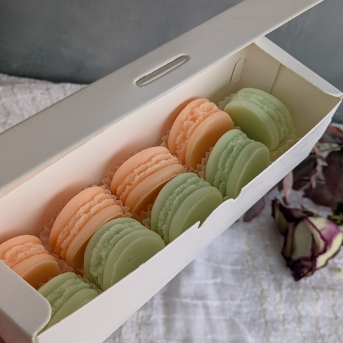 🍫 Box mit handgefertigten Waxmelts aus Sojawachs in Macaron-Form (ca. 140 g)